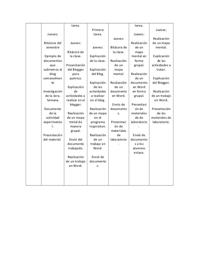 A continuación se mostrara el documento realizado en clase ya finalizado, además de la bitácora de clase